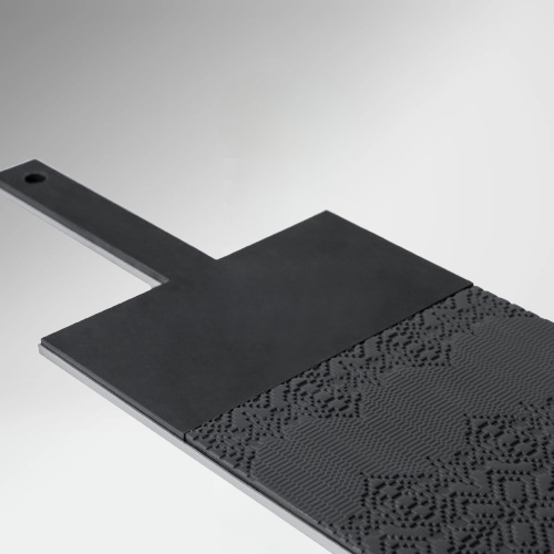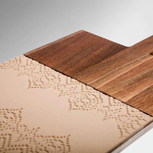 De In-Taglio serveerplank van Patricia Urquiola voor Mutina combineert massief notenhout met porseleinen details in een elegant stalen frame. Met zijn royale formaat van 79×18 cm is hij perfect om gerechten stijlvol te serveren. Verkrijgbaar in Écru, Bianco en Nero – een harmonie van warme en moderne materialen.