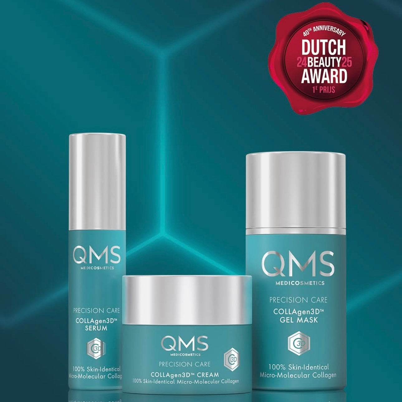 Met meer dan 30 jaar ervaring in de Collageen huidverzorging, zet QMS Medicosmetics een nieuwe maatstaf in de cosmetische Anti-aging. na het revolutionaire tweede generatie Collageen met 97% huididentiek Collageen, presenteren we nu onze wereldprimeur - de derde generatie Collageen.
